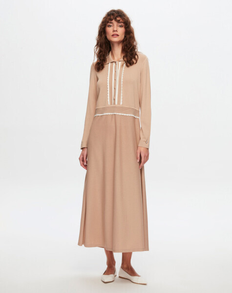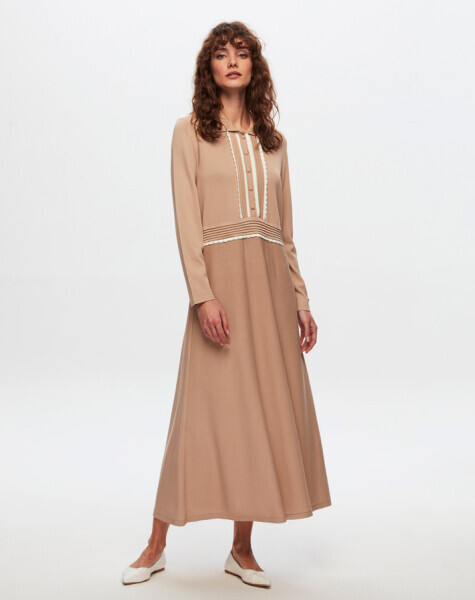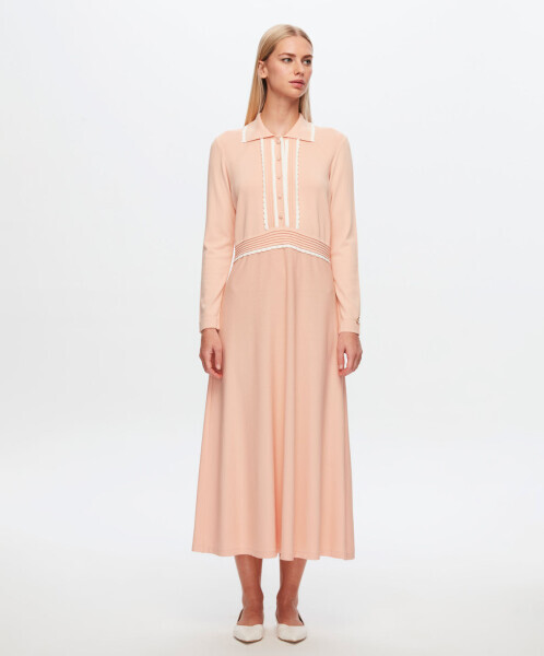 T24Y-4004 Gömlek Yaka Klasik Elbise 1293-SALMON