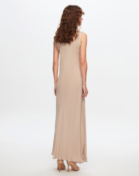 T24Y-4007 Kolsuz Kloş Cupro Elbise GREY