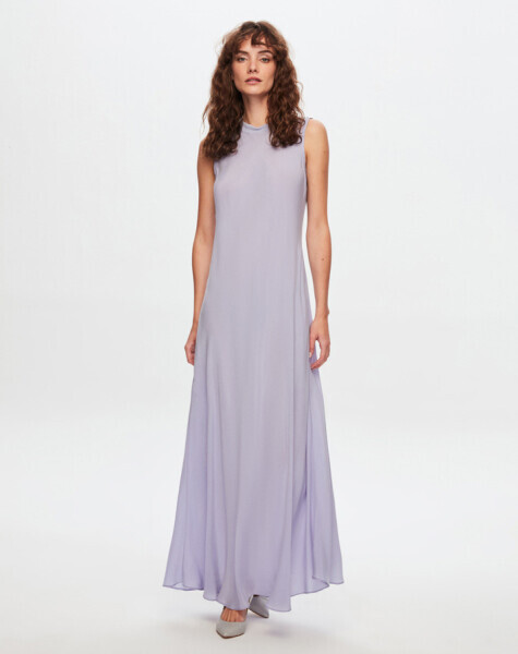 T24Y-4007 Kolsuz Kloş Cupro Elbise LİLAC