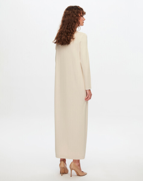 T24Y-4009 Yakası Ve Bileği Çizgili Elbise 1245-STONE