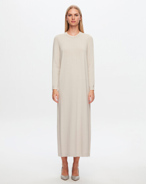 T24Y-4009 Yakası Ve Bileği Çizgili Elbise 1245-STONE / 1248-ORANGE