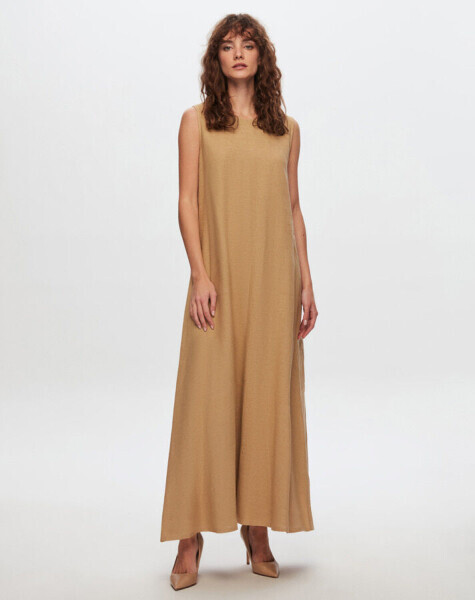 T24Y-4011 Düz Renk Kolsuz Keten Elbise CRAFT