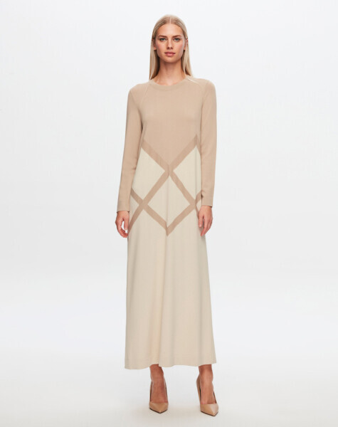 T24Y-4013 İri Baklava Desenli Triko Elbise 1245-STONE