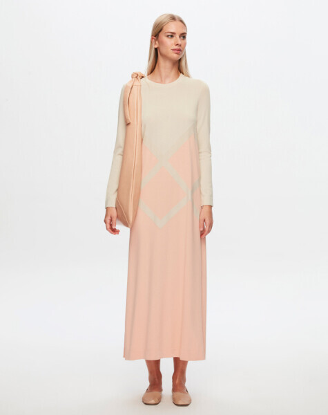 T24Y-4013 İri Baklava Desenli Triko Elbise 1293-SALMON