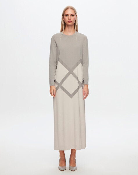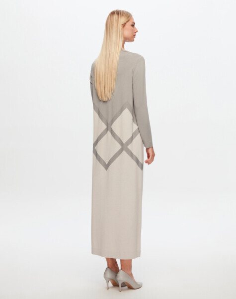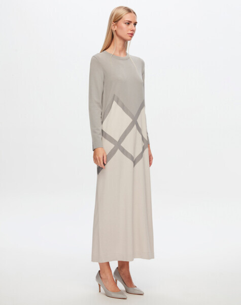 T24Y-4013 İri Baklava Desenli Triko Elbise 1398-LIGHT GREY