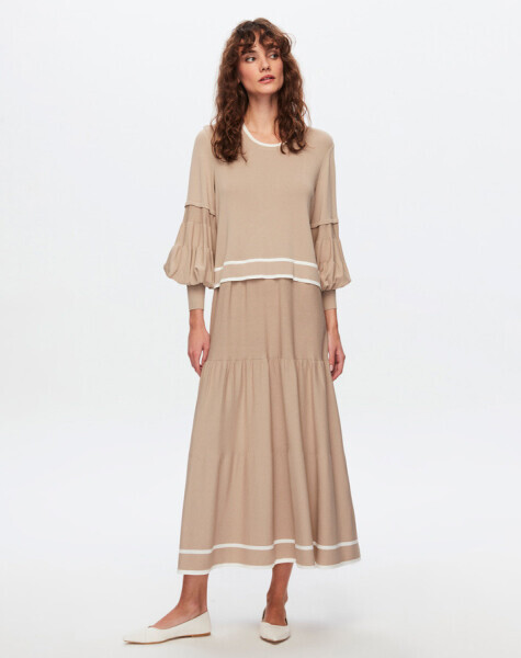 T24Y-4017 Balon Kol Detaylı Uzun Triko Elbise 1245-STONE / 1516-OLİVE