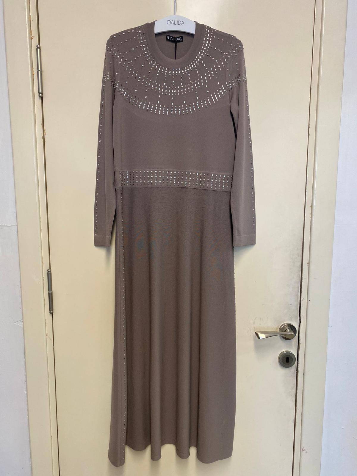 T24Y-4018 Yakası Taşlı Elbise 002-MİNK