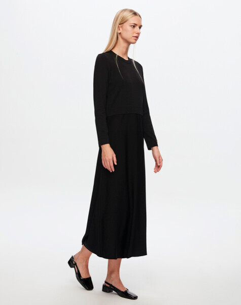 T24Y-4019 Düz Renk Basic Elbise BLACK