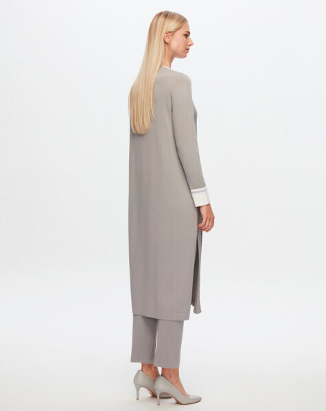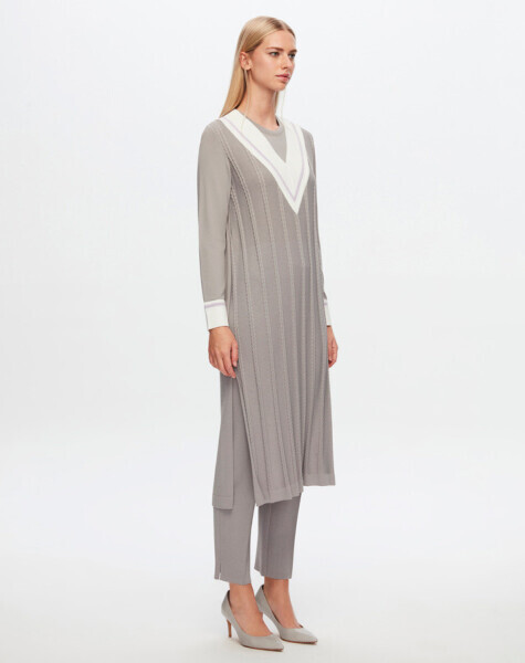 T24Y-4020 V Yaka Saç Örgü Detaylı Elbise 1381-DARK GREY