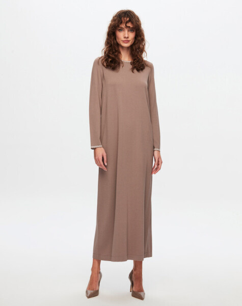 T24Y-4025 Yakası Ve Bileği Desenli Triko Elbise 002-MİNK