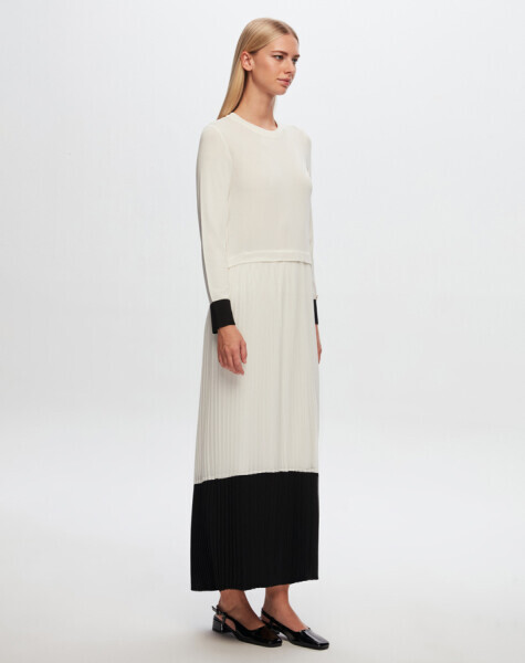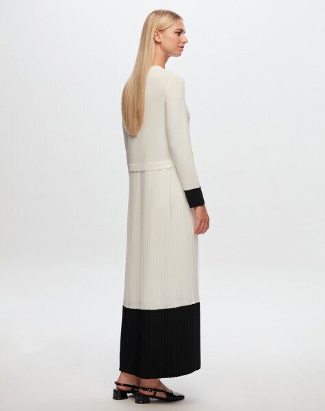 T24Y-4026 İki Renki Şifon -Triko Elbise 1012-ECRU