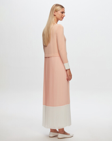 T24Y-4026 İki Renki Şifon -Triko Elbise 1293-SALMON