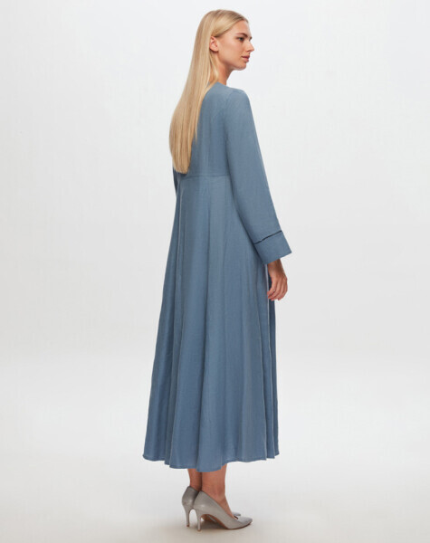 T24Y-4027 Pul Detaylı A Kesim Keten Elbise BLUE
