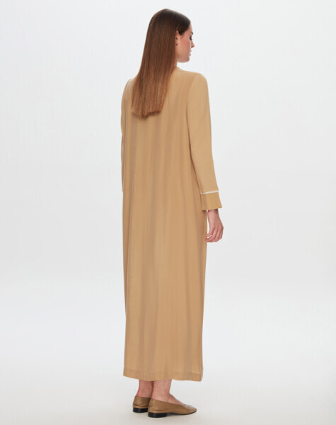 T25K-4002 Dik Yaka Cupro Elbise STONE