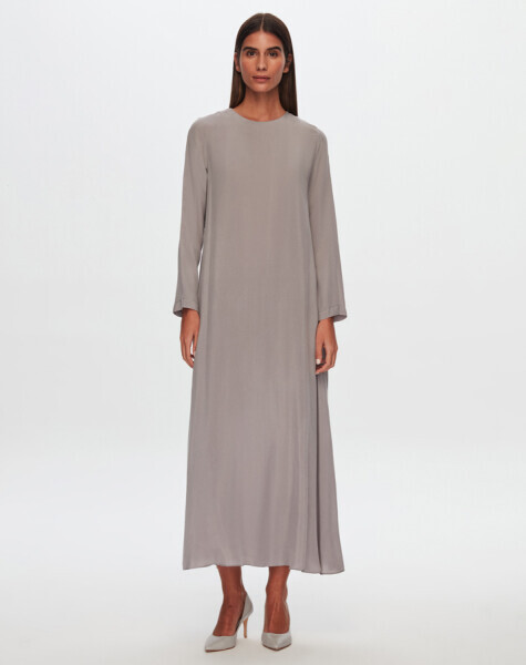 T25K-4002 Dik Yaka Cupro Elbise GREY