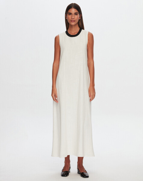T24Y-4036 Triko Yaka Detaylı Kolsuz Keten Elbise BEİGE
