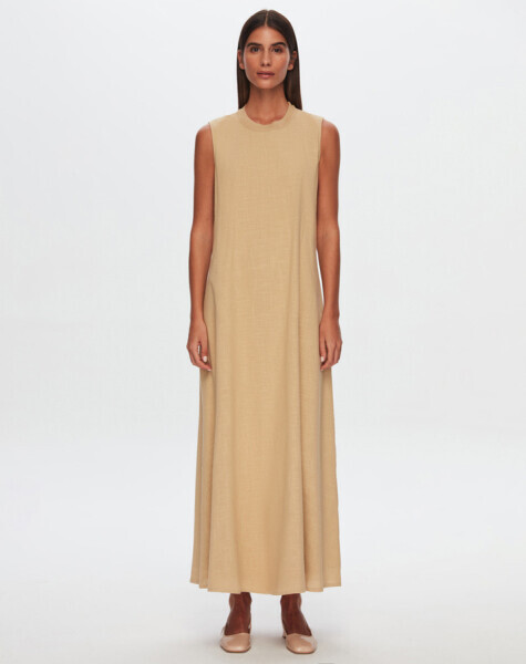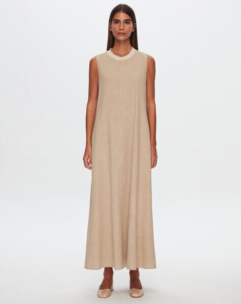 T24Y-4036 Triko Yaka Detaylı Kolsuz Keten Elbise CRAFT