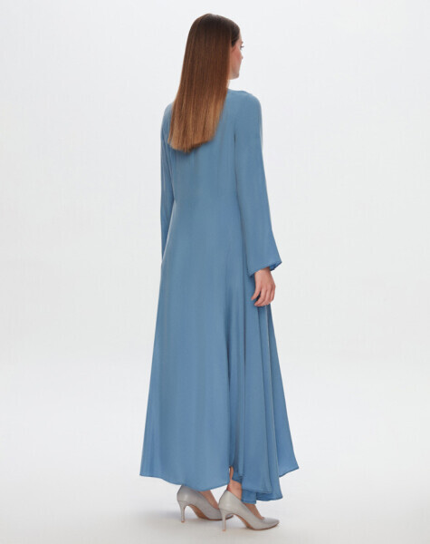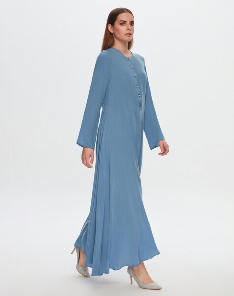 T24Y-4037 Yuvarlak Yaka Düğme Detaylı Cupro Elbise BLUE