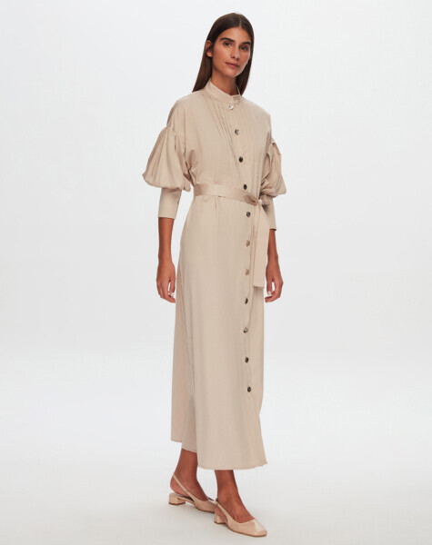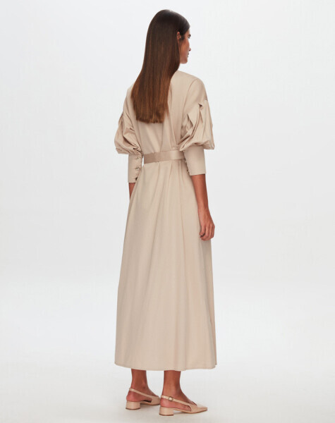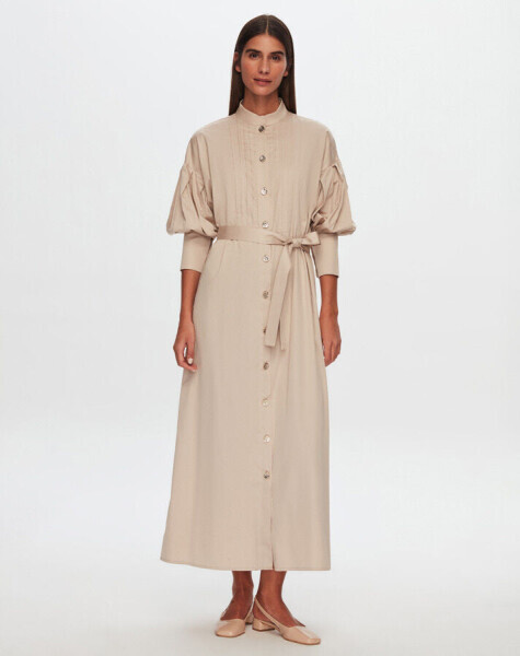 T24Y-4041 Nervür Detaylı Poplin Elbise BEİGE