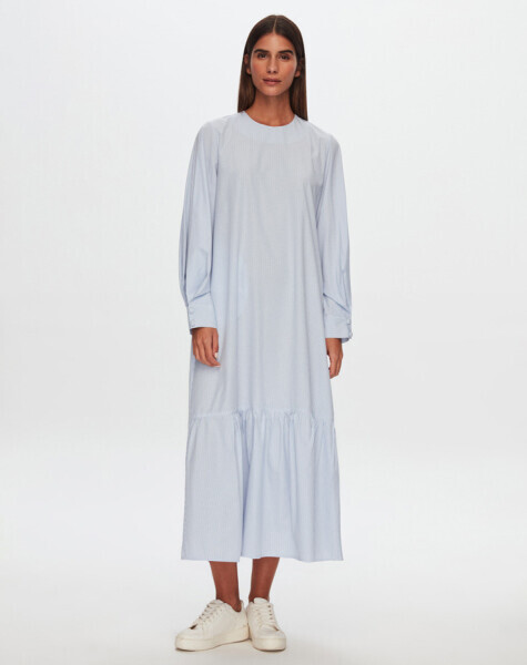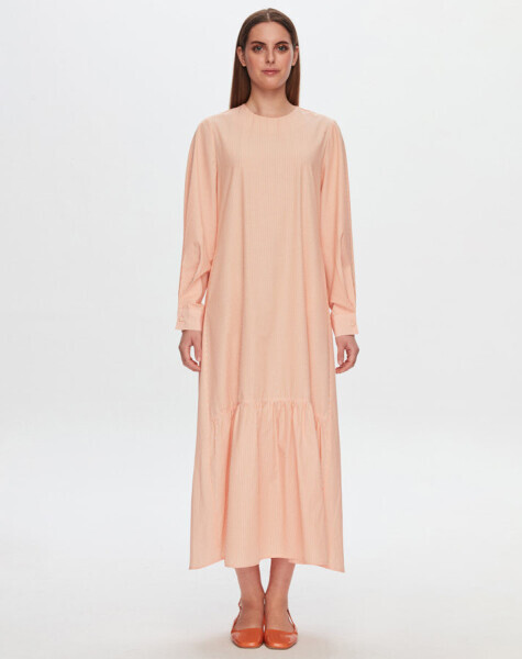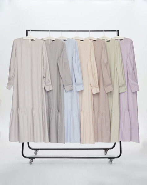 T24Y-4042 Etek Ucu Büzgülü Poplin Elbise BEİGE