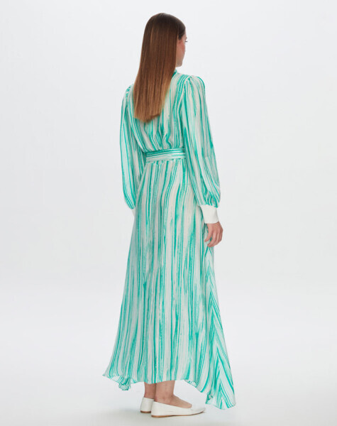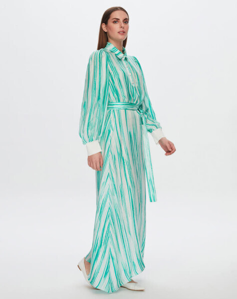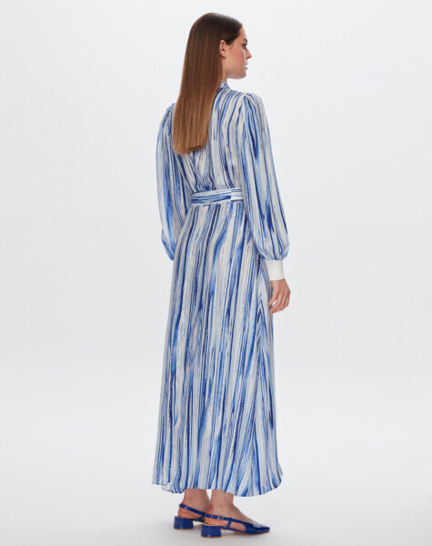 T24Y-4044 Renkli Çizgili Uzun Elbise BLUE