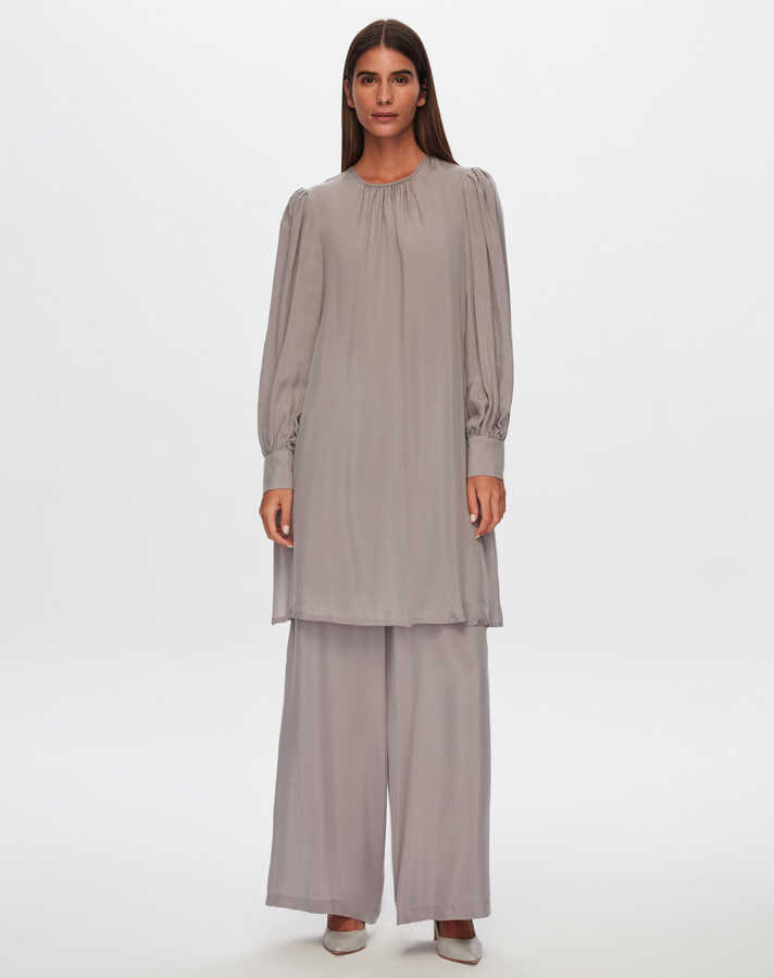 T24Y-6015 Balon Kollu Cupro Tunik GREY