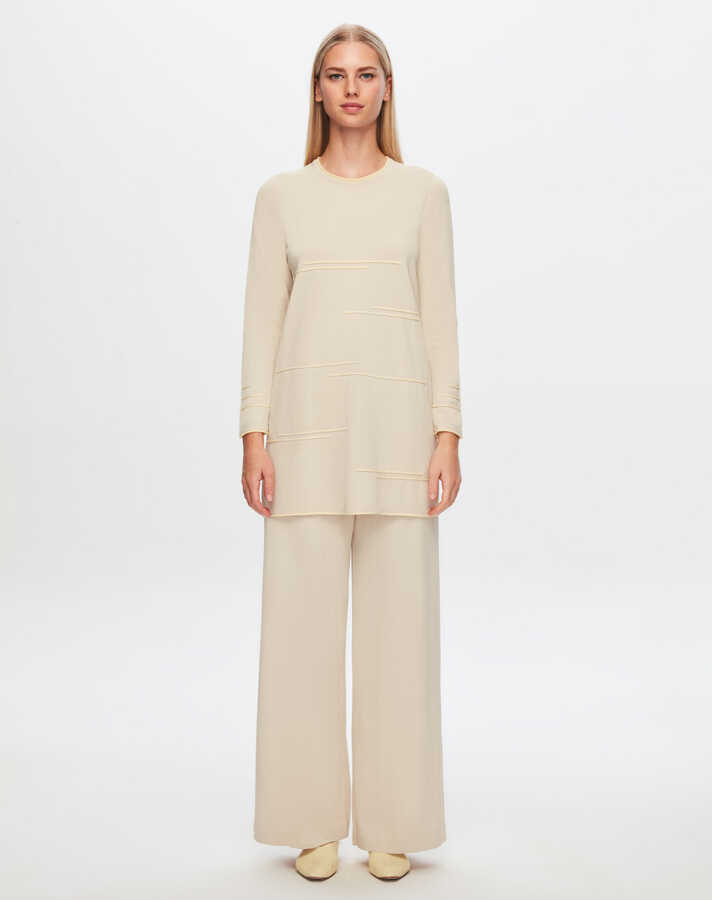 T24Y-6019 Önü Örgü Teknikli Triko Tunik 1245-STONE / 1345-VANİLYA