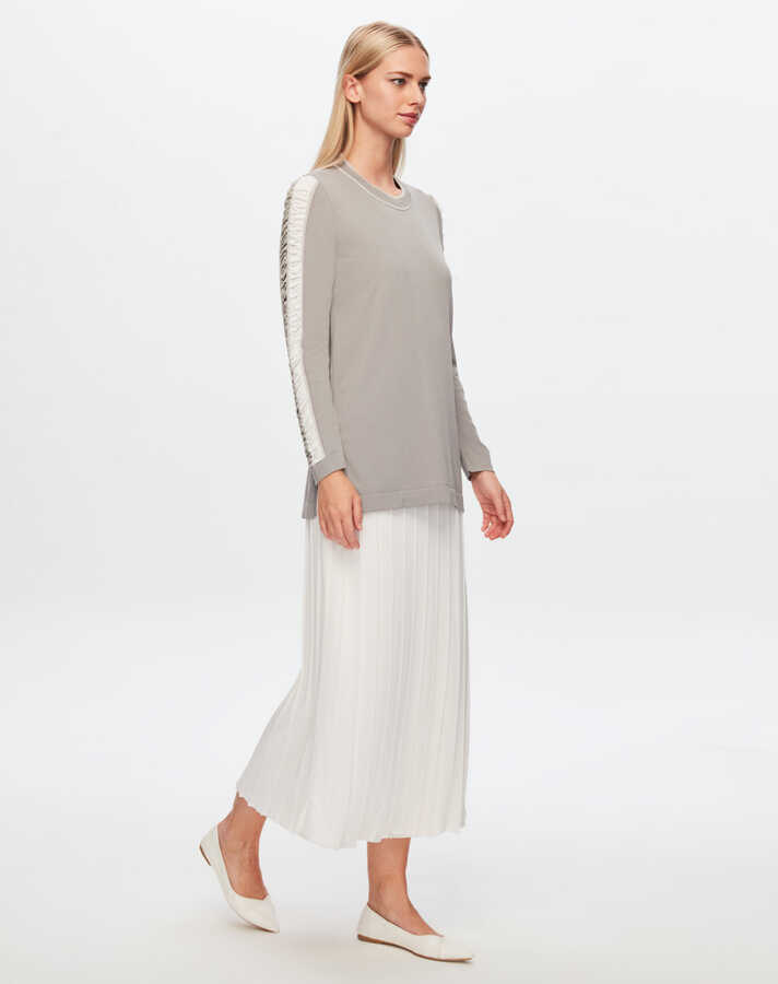 T24Y-6020 Kolu Parlak İp Detaylı Triko Tunik 1381-DARK GREY