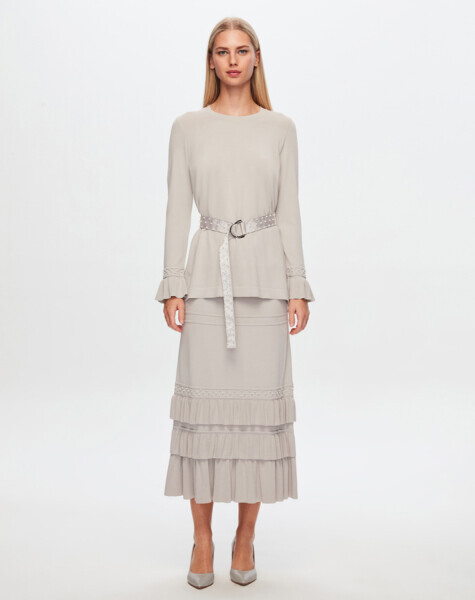 Bileği Fırfırlı Tunik Gri 1398-LIGHT