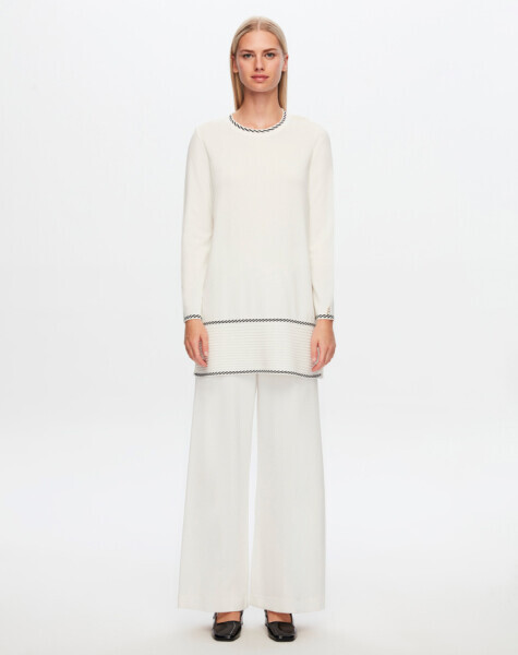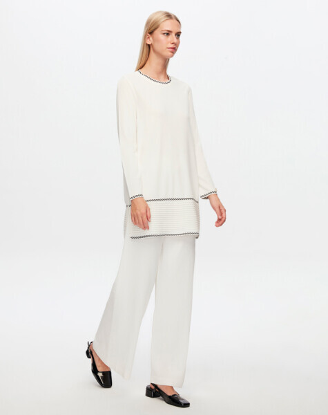 T24Y-6030 Etek Ucu Bekletmeli Desen Detaylı Tunik BLACK