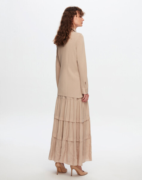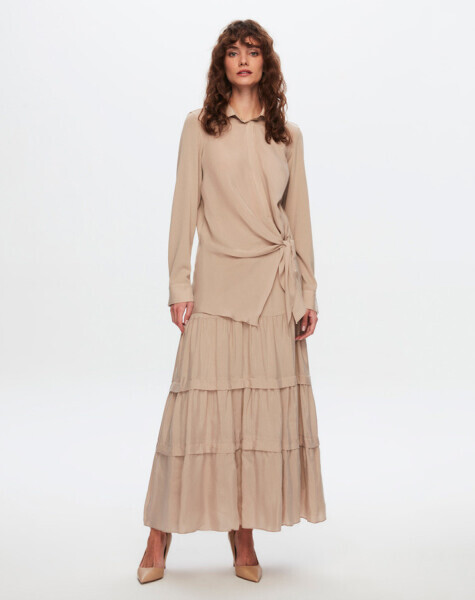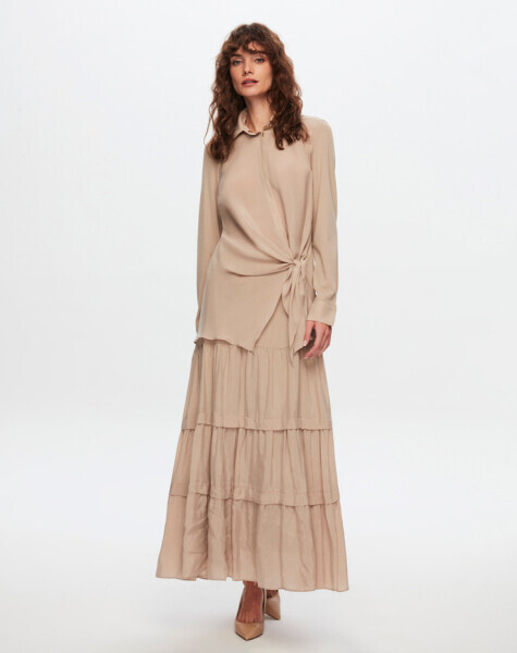 T24Y-6037 Beli Bağlama Detaylı Cupro Tunik 1052-BEİGE