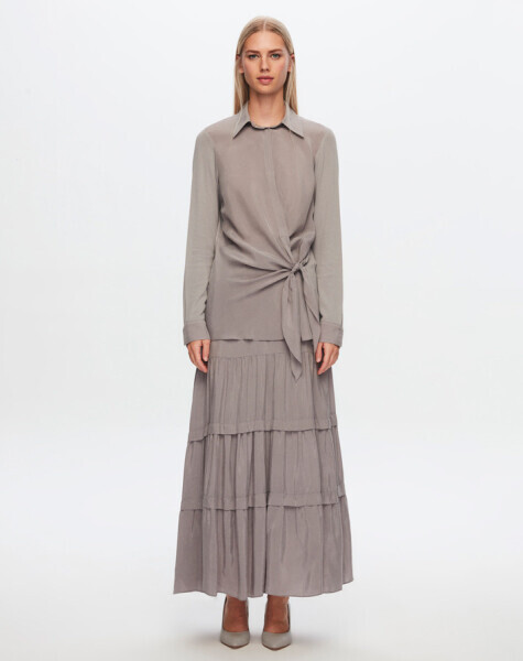 T24Y-6037 Beli Bağlama Detaylı Cupro Tunik 1381-DARK GREY