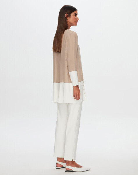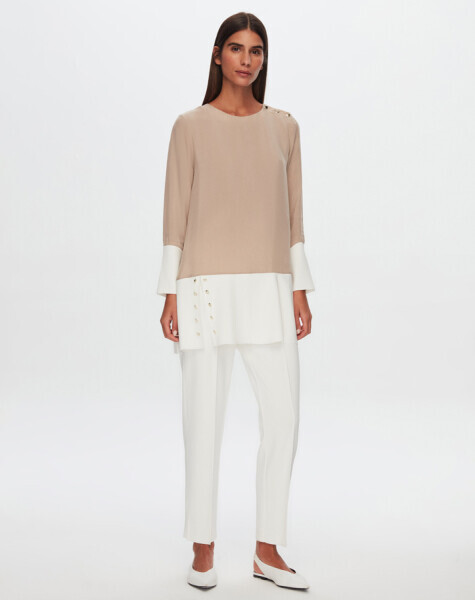 T24Y-6050 Etek Ucu Düğme Detaylı Cupro Tunik BEİGE