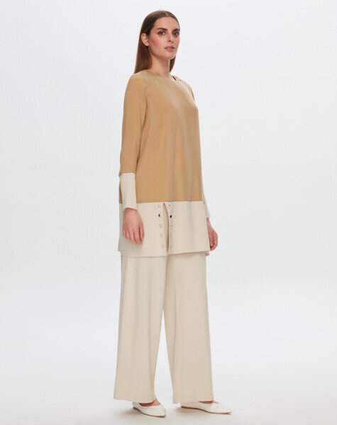 T24Y-6050 Etek Ucu Düğme Detaylı Cupro Tunik CRAFT