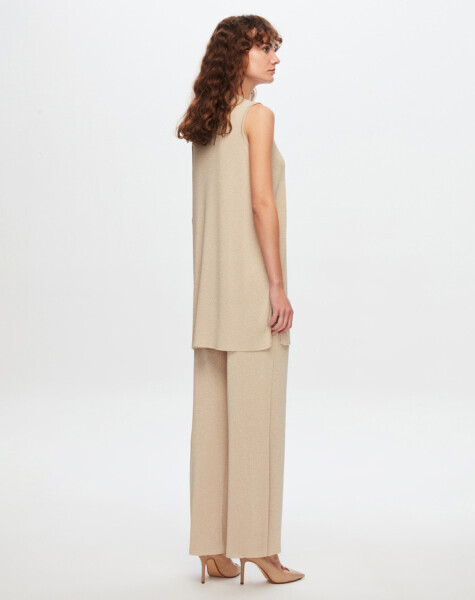 T25Y-7002 Renk Bloklu Bol Paça Triko Pantolon 1147-STONE