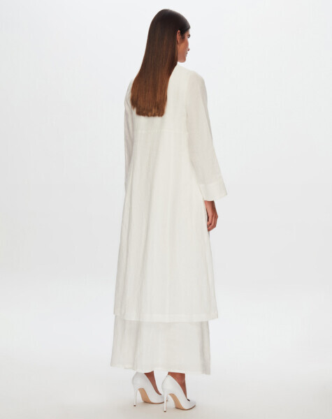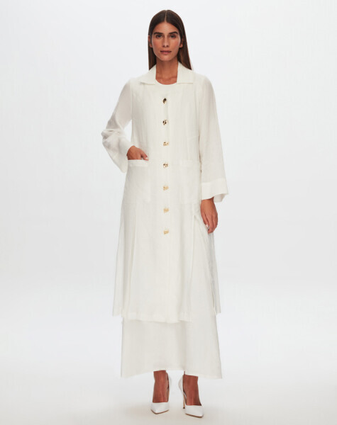 T24Y-8015 Düğme Detaylı Uzun Keten Ceket ECRU