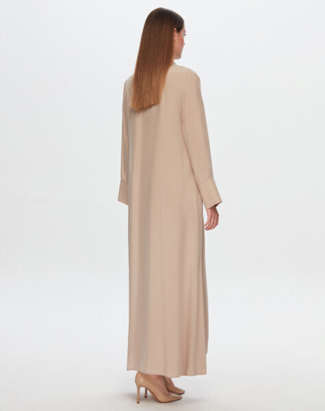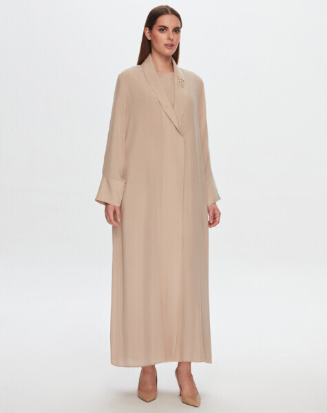 T24Y-8018 Şal Yaka Cupro Uzun Ceket BEİGE