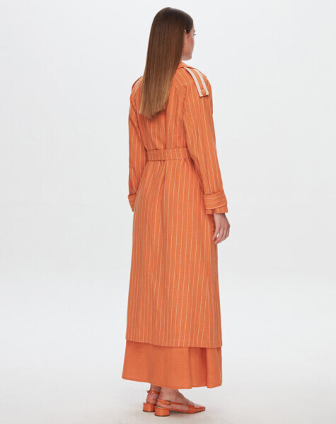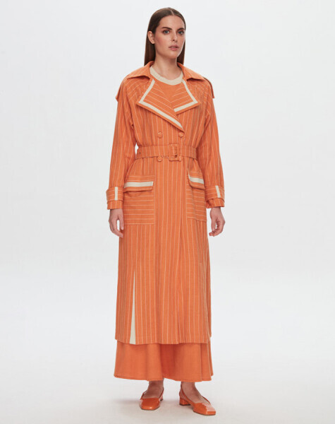 T24Y-8023 Çizgili Kruvaze Uzun Keten Ceket ORANGE