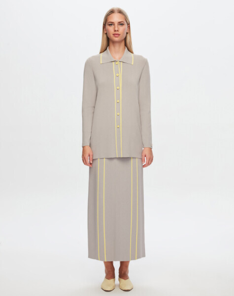 T24Y-9001 Çizgi Detaylı Elegant Hırka 1099-DARK GREY