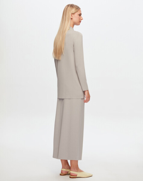 T25K-9003 Yaka Detaylı Agraflı Uzun Hırka VİALE-GREY