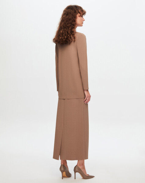 T25K-9007 Düz Renk Uzun Basic Hırka VİALE-GREY