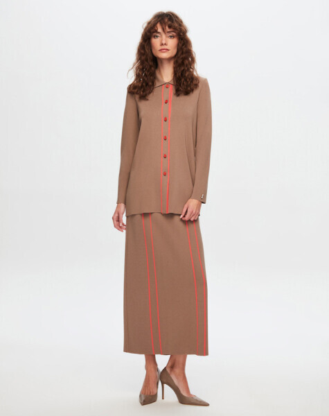 T24Y-9001 Çizgi Detaylı Elegant Hırka MV193-MİNK