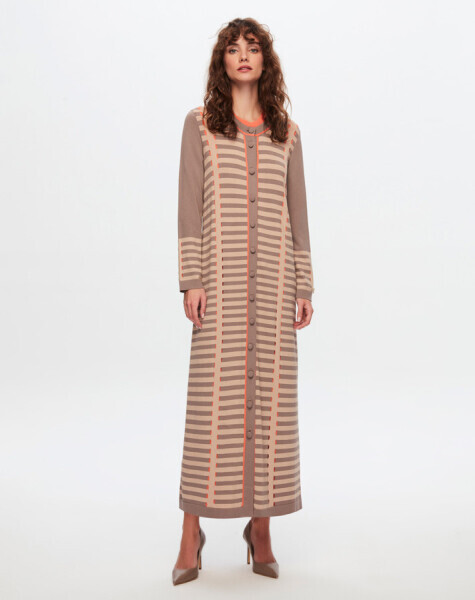 T24Y-9011 Çizgi ve Ajur Detaylı Uzun Hırka 002-MİNK