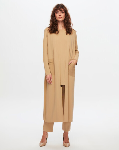 T24Y-9012 Triko- Cupro Uzun Hırka 1052-BEİGE