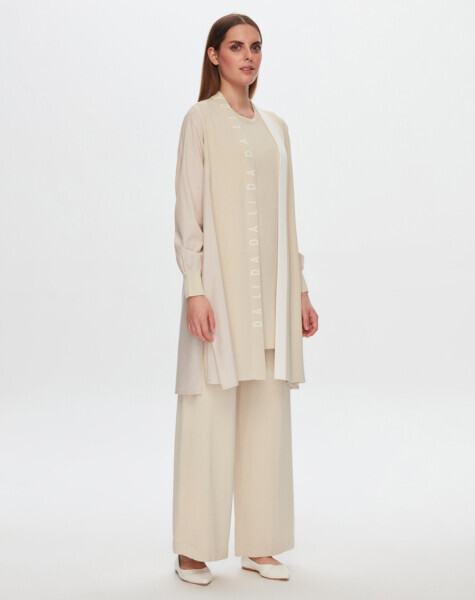 T24Y-9033 Dalida Yazılı Poplin-Triko Hırka BEİGE
