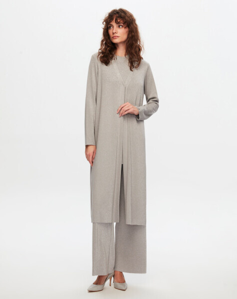 T24Y-4013 İri Baklava Desenli Triko Elbise 1398-LIGHT GREY