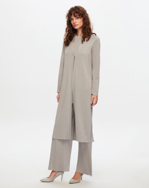 T24K-8013 Kare Desenli Uzun Hırka COMO-CAREMEL