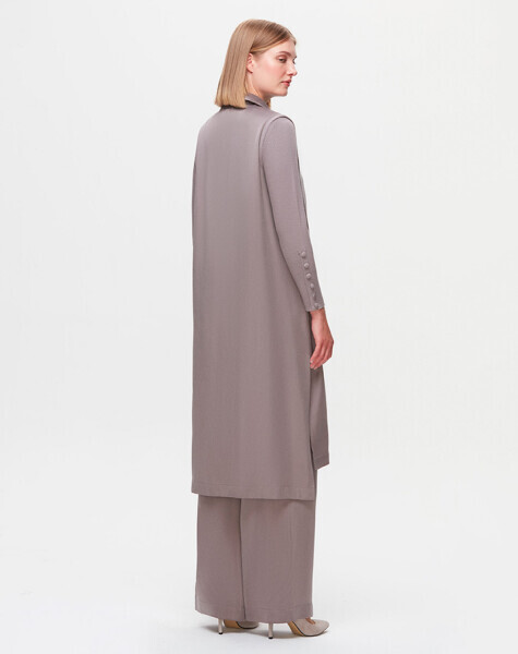 T25K-1000 Cupro Detaylı Triko Yelek VİALE-GREY