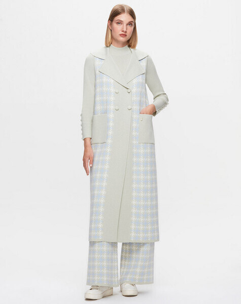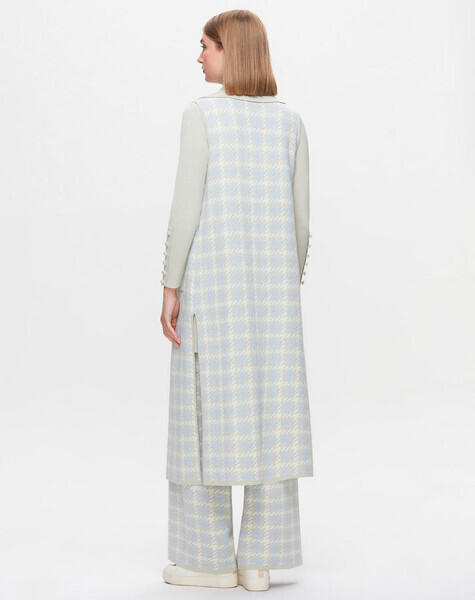 T25K-1003 Kazayağı Desenli Uzun Triko Yelek FONIA-RIVER