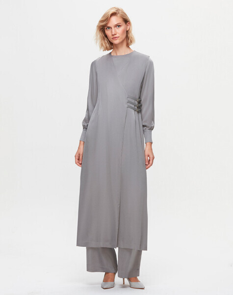 T25K-1004 Deri Kemer Detaylı CuproYelek GREY